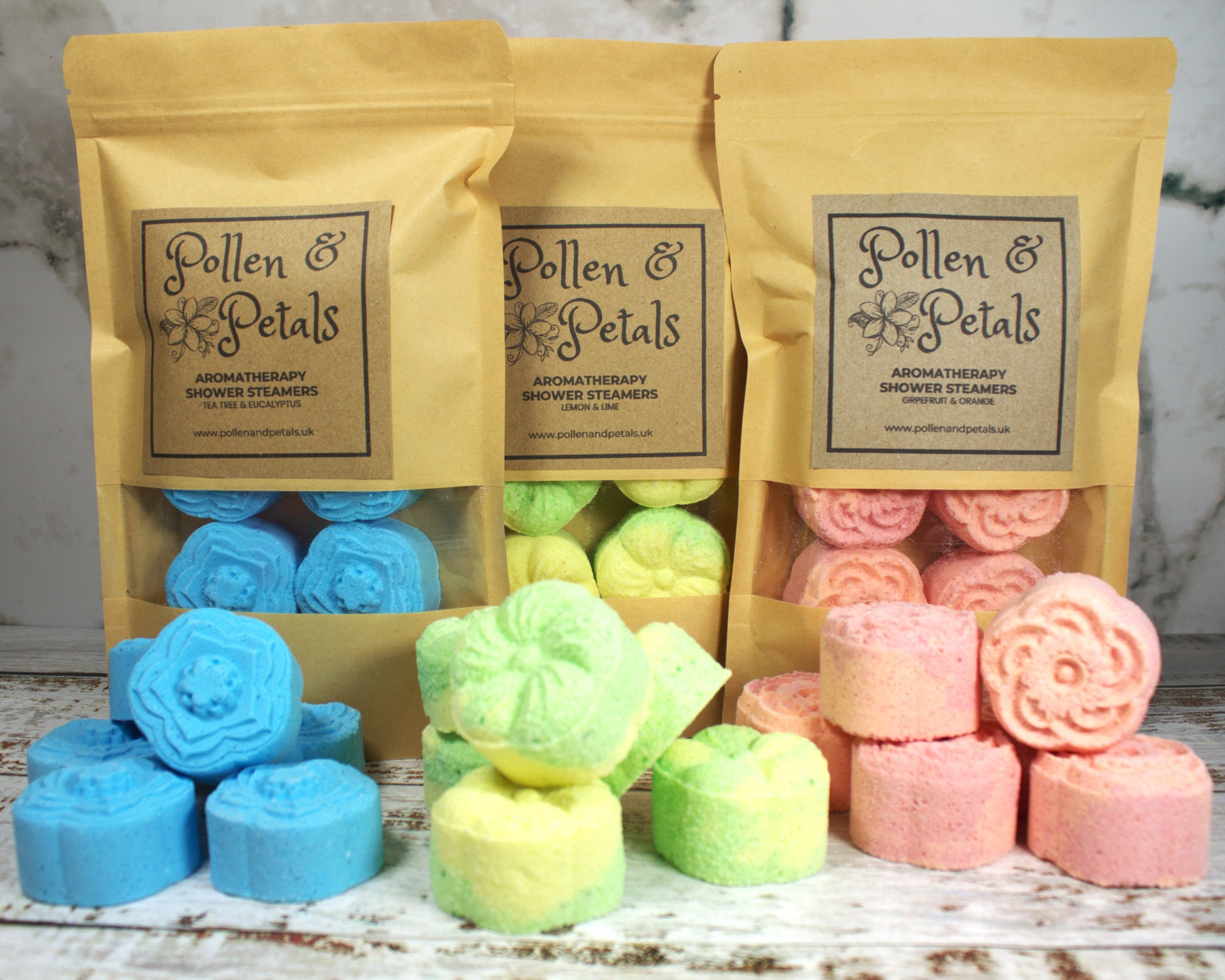 Transform your shower into a luxurious aromatherapy spa experience with these handcrafted shower steamers! Infused with pure essential oils, our shower fizzies release therapeutic scents to promote relaxation, clear congestion, and uplift your mood.